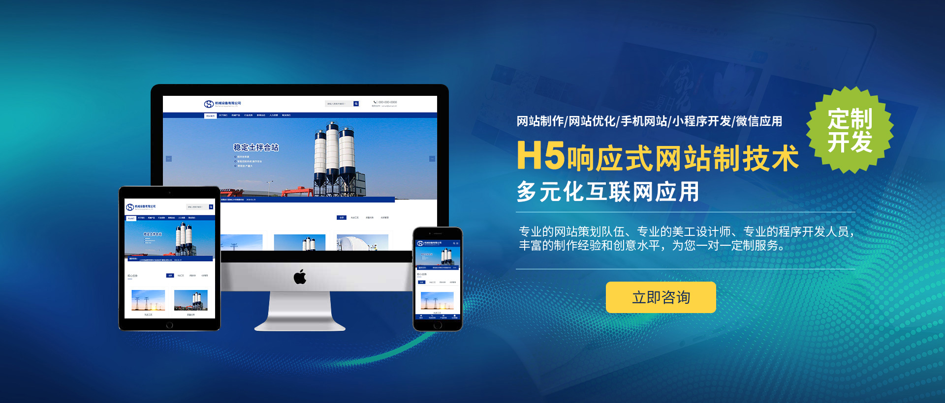 專業(yè)的網(wǎng)站策劃隊伍、專業(yè)的美工設(shè)計師、專業(yè)的程序開發(fā)人員,豐富的制作經(jīng)驗和創(chuàng)意水平,根據(jù)您的企業(yè)的行業(yè)類型定制...